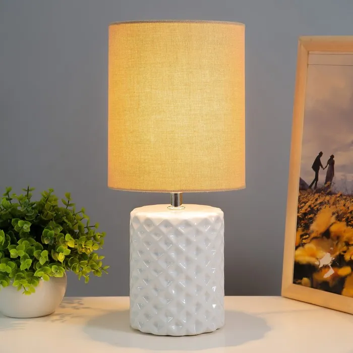 - Материалы: Керамическая основа и текстильный абажур обеспечивают прочность и долговечность изделия, а также добавляют ему эстетической привлекательности.