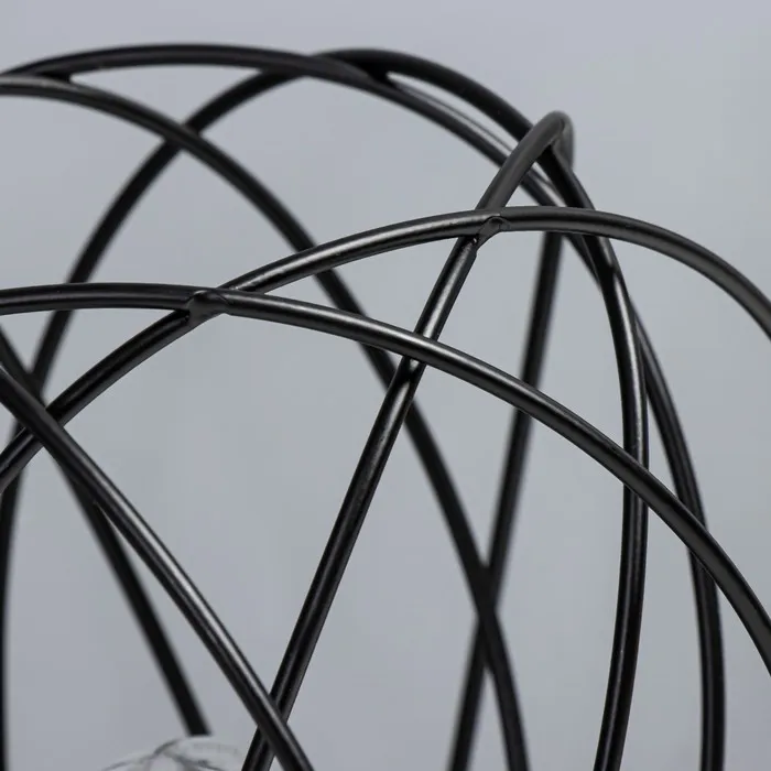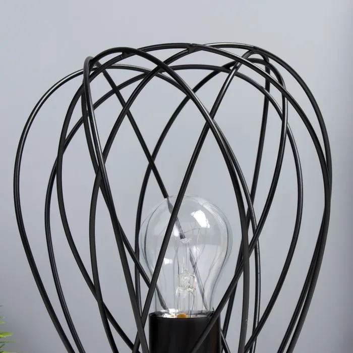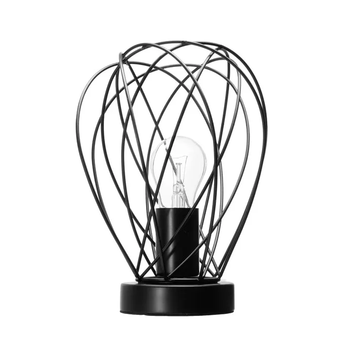 Эта настольная лампа с черным металлическим основанием станет стильным дополнением вашего интерьера. Компактные размеры позволяют разместить её в любом месте — на столе, тумбочке или полке. Плафон с нестандартной формой создает интересный акцент, а направленный свет обеспечивает комфортное освещение для чтения или работы.