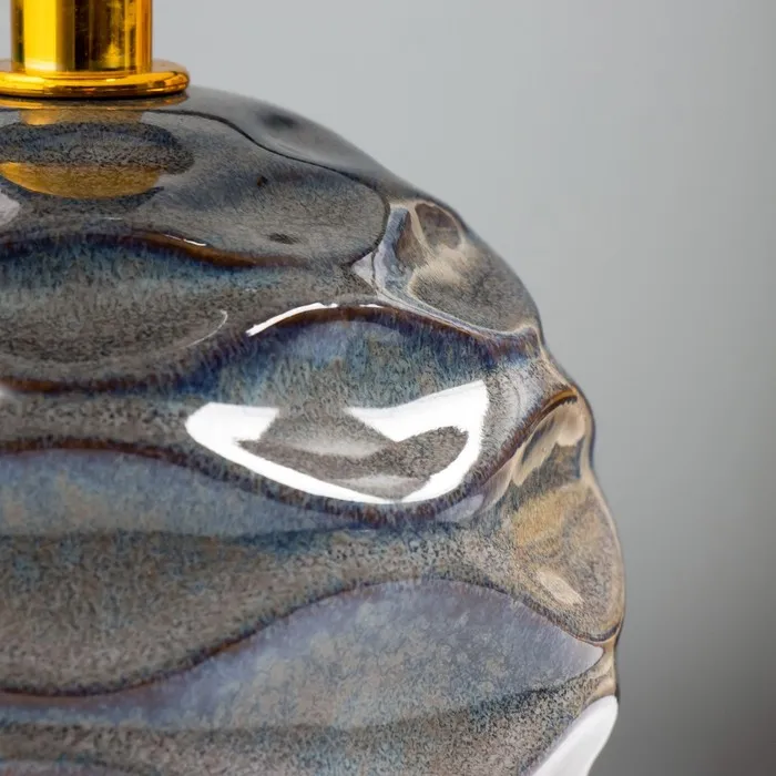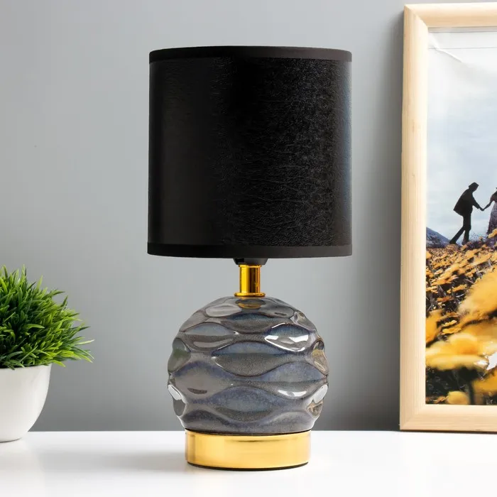 Эта настольная лампа станет ярким акцентом в вашем интерьере, добавляя стиль и уют в любое пространство. С компактными размерами 13×13×26.5 см и синим керамическим основанием, она легко вписывается в различные стили оформления, от современного до классического.