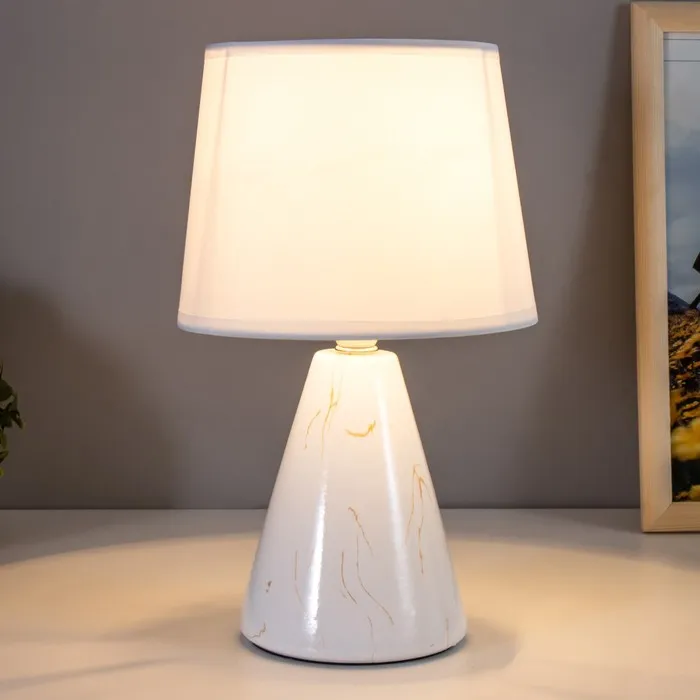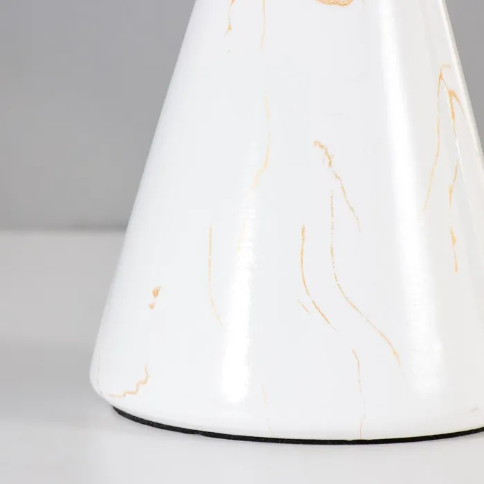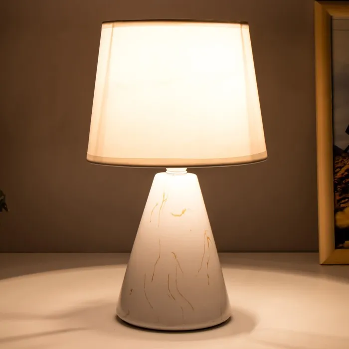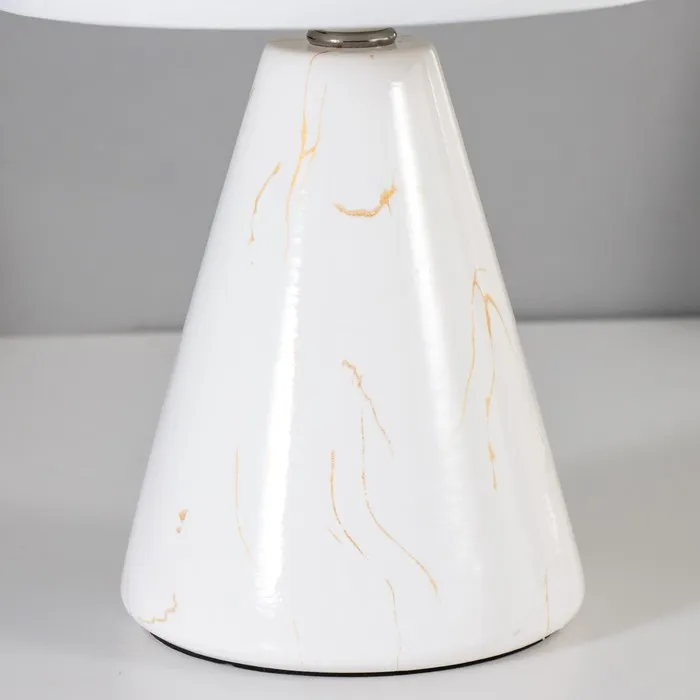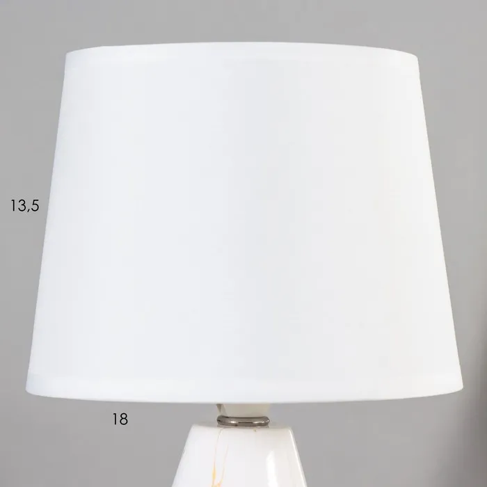 Эта настольная лампа добавит элегантности и уюта в ваше пространство. С высотой 29 см и белым керамическим основанием, она станет прекрасным дополнением для рабочего стола или прикроватной тумбочки, создавая атмосферу спокойствия и гармонии.