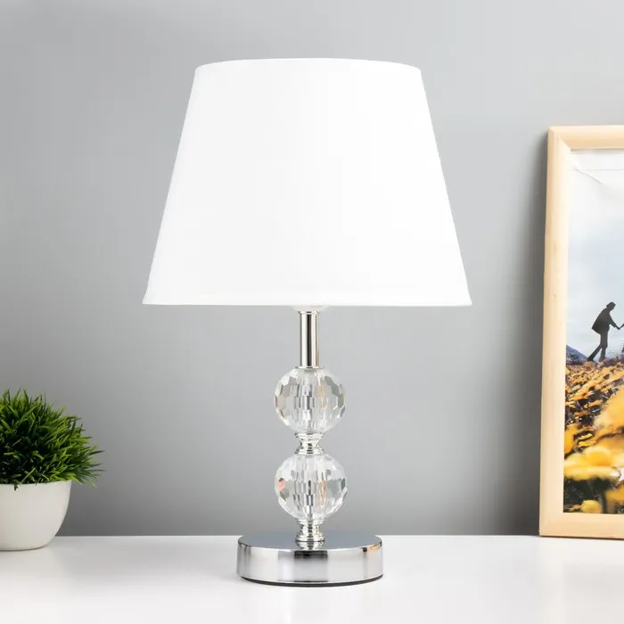 Эта лампа не только освещает пространство, но и добавляет изысканности в ваш дом. Её утончённый дизайн и сочетание хрома с белым текстилем делают её идеальным выбором для спальни, гостиной или рабочего кабинета.