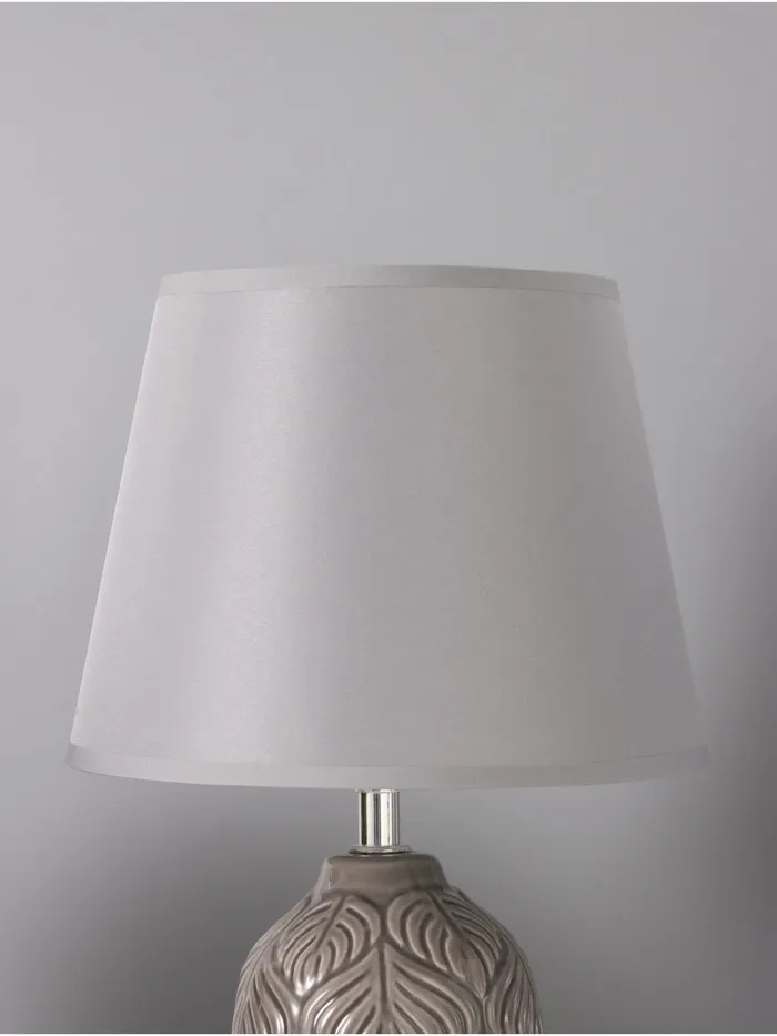- Стильный внешний вид: Керамическое основание серого цвета и трапециевидный абажур в темных тонах гармонично вписываются в различные стили оформления.