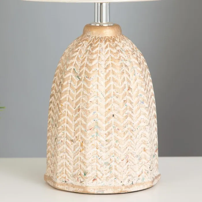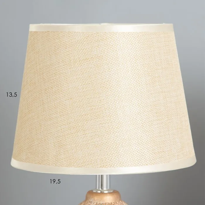 Эта настольная лампа с утончённым дизайном станет привлекательным элементом вашего интерьера. Бежевое керамическое основание и текстильный абажур в светлых тонах создают атмосферу тепла и уюта. Высота 33 см делает её идеальным решением для размещения на столах и тумбах, обеспечивая мягкое и комфортное освещение.