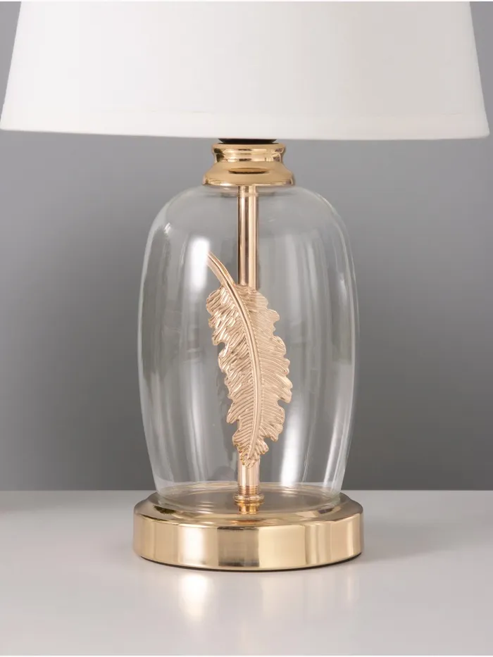 - Изысканный дизайн: Золотое металлическое основание и прозрачный абажур в светлых тонах создают гармоничное сочетание, подходящее для различных стилей оформления.