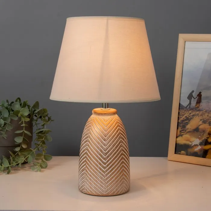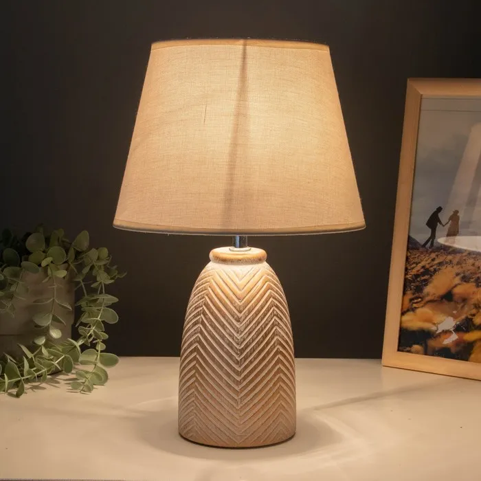- Текстильный абажур светлых тонов обеспечивает мягкое и комфортное освещение.