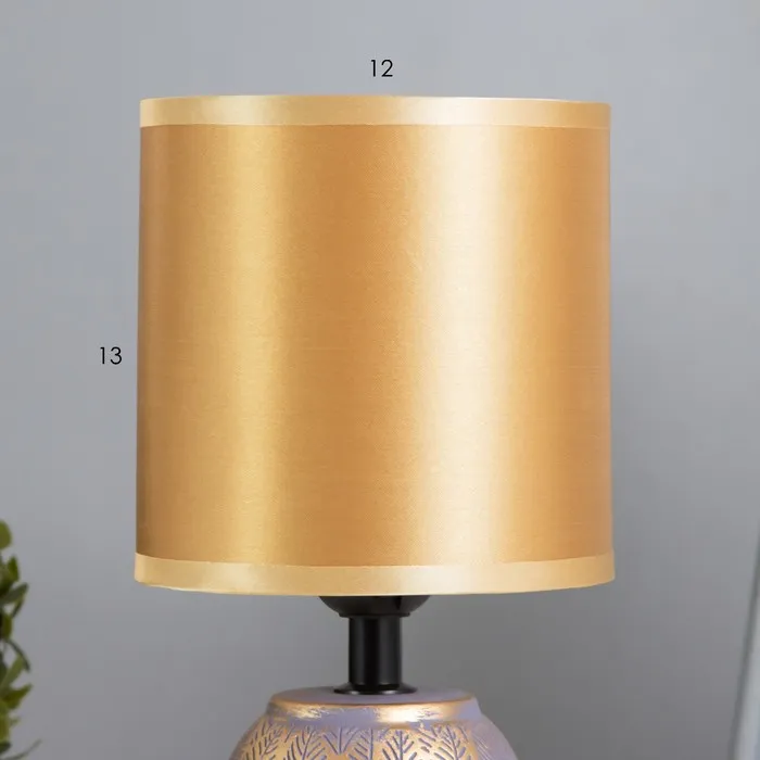 Эта стильная настольная лампа станет изысканным акцентом в вашем интерьере. Сочетание сиреневого и золотого цветов придаёт ей элегантный вид, а цилиндрический абажур создает мягкое и приятное освещение. Она идеально подходит для создания уютной атмосферы в спальне, гостиной или на рабочем столе.