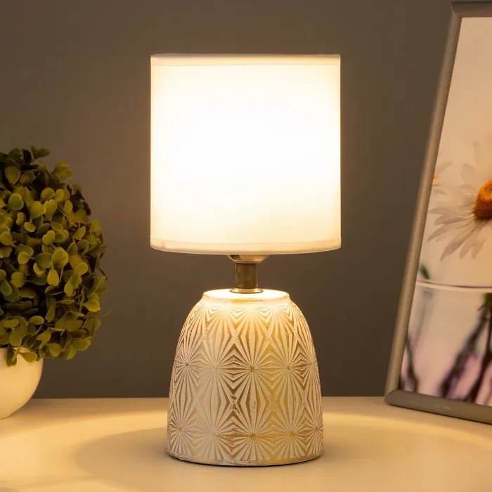 Эта настольная лампа станет стильным дополнением вашего интерьера. Сочетание белого и золотого цветов придаёт ей изысканный вид, а цилиндрический абажур обеспечивает мягкое освещение. Она идеально подходит для создания уютной атмосферы в спальне, гостиной или на рабочем столе.