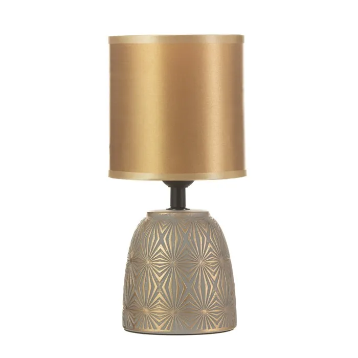 Эта настольная лампа станет отличным дополнением вашего интерьера, добавляя изысканности и уюта. Сочетание серого и золотого цветов придает ей стильный вид, а цилиндрический абажур создает мягкое и комфортное освещение, идеально подходящее для чтения или отдыха.