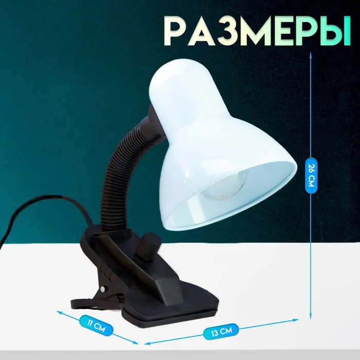 Настольная лампа для школы и офиса на зажиме RISALUX Е27, с выкл. 220 В, белая, 26×13×11 — Характеристики