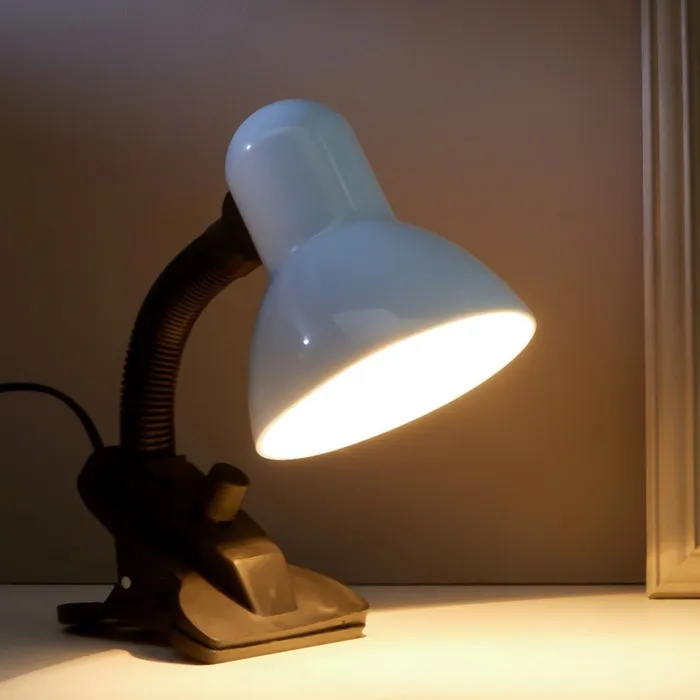 Настольная лампа на зажиме — отличный помощник для взрослых и детей, занимающихся за письменным столом. Приятный свет не режет глаза, а дизайн разработан таким образом, чтобы светильник не отвлекал от работы.Лампа удобна в использовании: зажим даёт возможность помещать её в труднодоступных местах. Корпус подвижен: он поднимается и опускается на достаточную для глаз высоту.