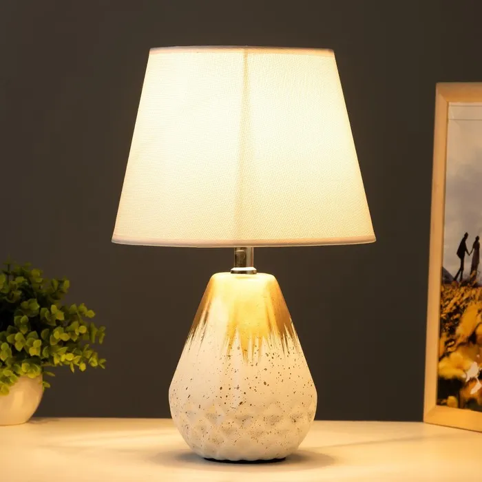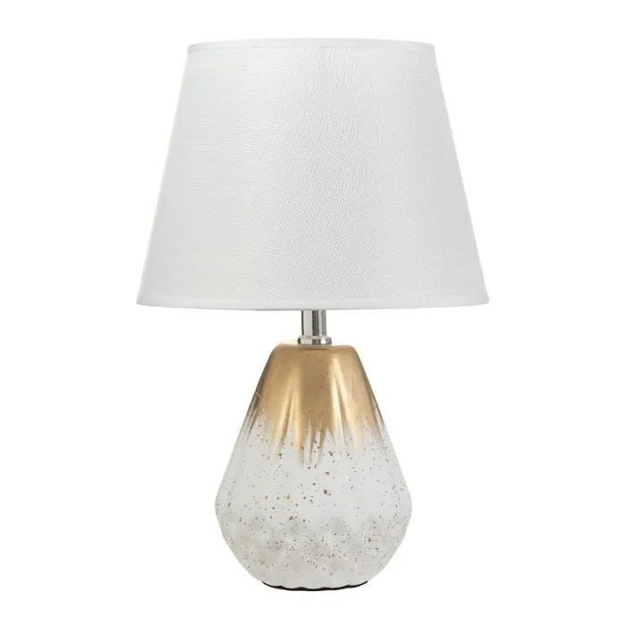 Эта настольная лампа станет стильным акцентом в вашем доме, сочетая элегантность и практичность. С золотым и белым керамическим основанием и текстильным абажуром в светлых тонах, она идеально подходит для создания уютной атмосферы. Лампа обеспечит комфортное освещение для чтения и вечерних встреч.