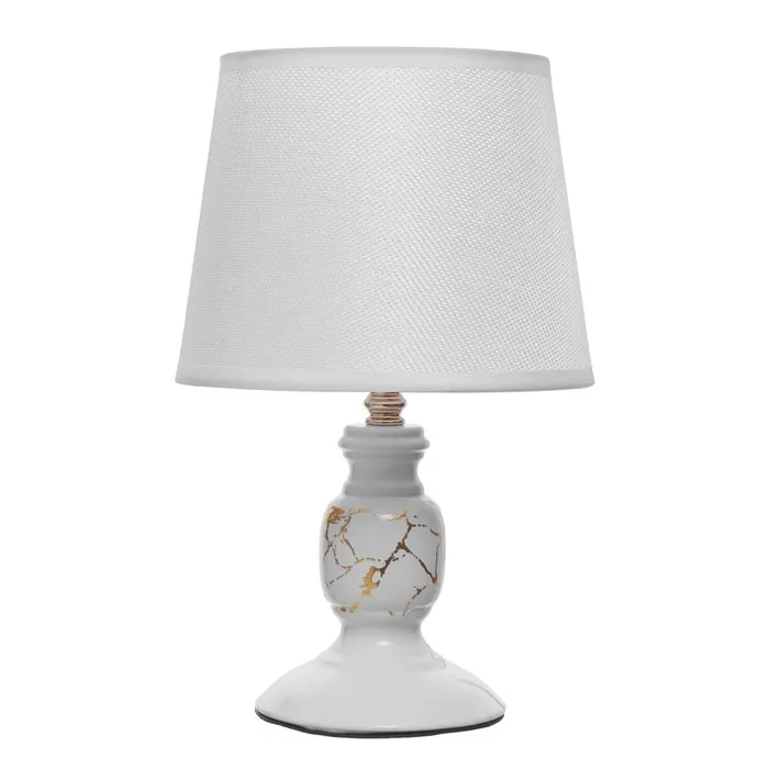 Эта настольная лампа станет стильным акцентом в вашем интерьере, добавляя свет и уют. С белым металлическим основанием и текстильным абажуром, она идеально подходит для создания мягкого освещения в любой комнате.