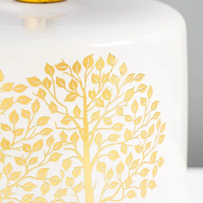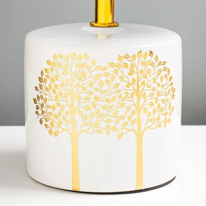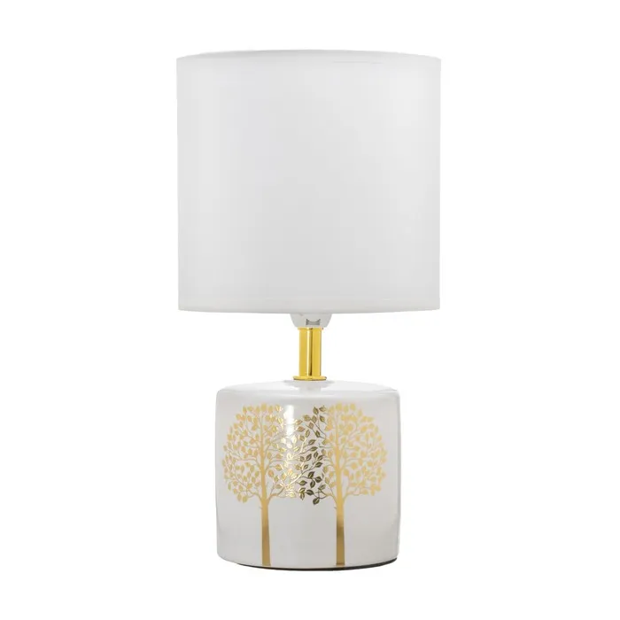 Эта настольная лампа станет отличным дополнением вашего интерьера, привнося уют и стиль. С белым керамическим основанием и цилиндрическим текстильным абажуром, она идеально подходит для создания мягкого освещения в любых помещениях.