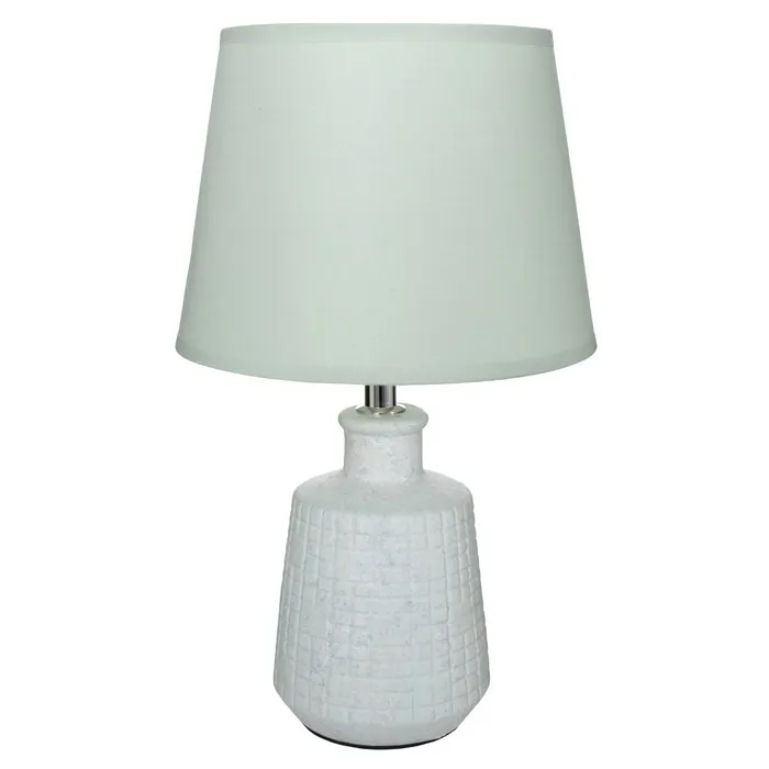 Эта настольная лампа с изысканным дизайном станет прекрасным элементом вашего интерьера. С высотой 34 см и размерами 20×20 см, она отлично подойдет для создания уютной атмосферы в гостиной, спальне или кабинете. Нежно-мятный цвет основания из керамики и текстильный абажур придают ей стильный и классический вид, а мягкий свет создает комфортное освещение для чтения или отдыха.