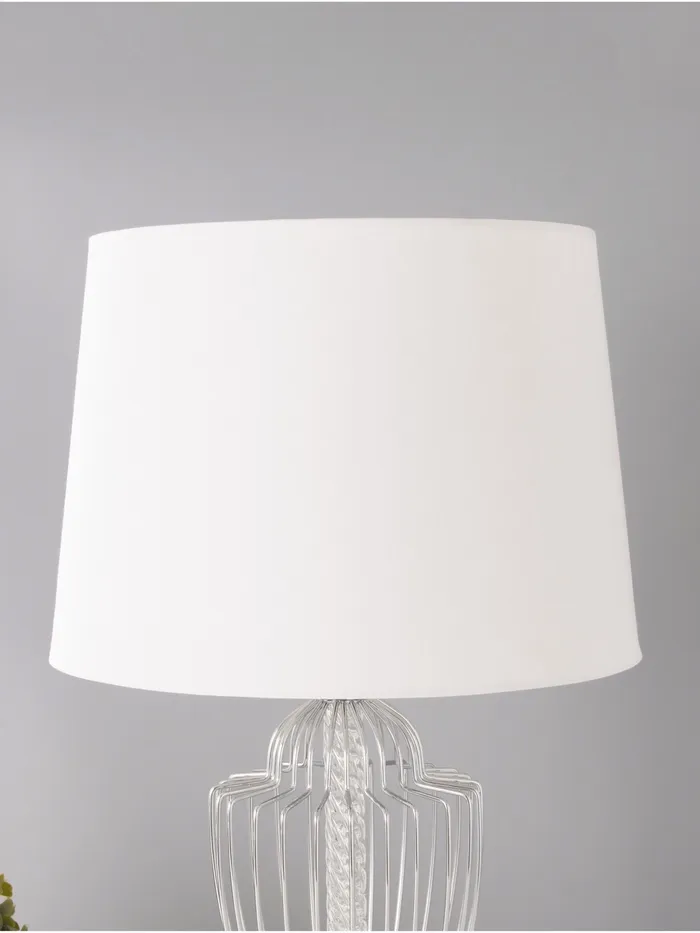 - Современный стиль: Прозрачное хромированное основание в сочетании с белым абажуром создает легкий и воздушный эффект, который гармонично впишется в любой интерьер.