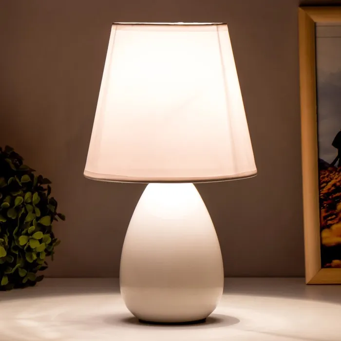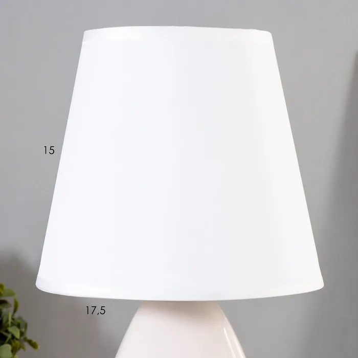 Эта настольная лампа станет элегантным дополнением вашего интерьера, придавая комнате уют и стиль. С высотой 29 см и размерами 18×18 см, она отлично подойдёт для рабочего стола, прикроватной тумбочки или любого другого уголка, где требуется мягкое освещение. Белое керамическое основание и текстильный абажур в светлых тонах создают гармоничное сочетание, подходящее для классических интерьеров.