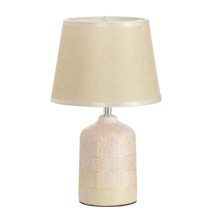 Эта настольная лампа станет отличным дополнением вашего интерьера, привнося в него уют и стиль. С высотой 33 см и размерами 20×20 см, она идеально подходит для рабочего стола, прикроватной тумбочки или любого уголка, где необходимо мягкое освещение. Бежевое керамическое основание и текстильный абажур светлых тонов создают гармоничное сочетание, которое легко вписывается в классические и современные интерьеры.