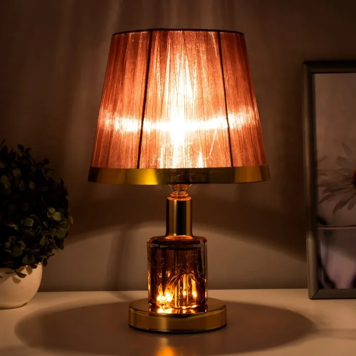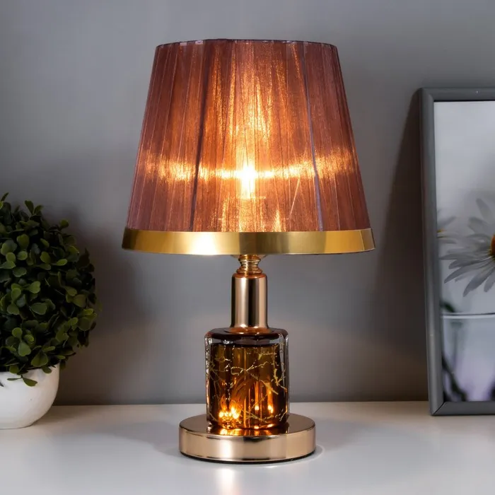 Эта настольная лампа с шоколадно-золотым дизайном станет изысканным дополнением вашего интерьера. Сочетание металла и текстиля придает ей элегантный вид, а конусный абажур создает мягкое и комфортное освещение для чтения или работы.