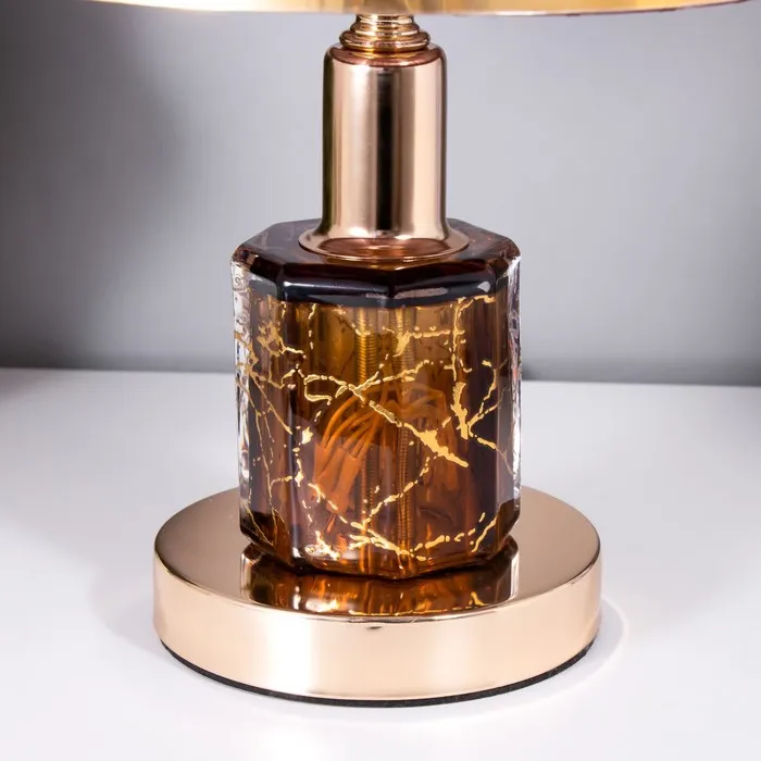 - Металлическое основание в золотом и коричневом цветах добавляет роскоши и стиля.