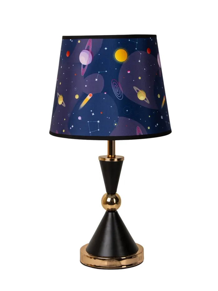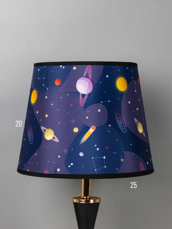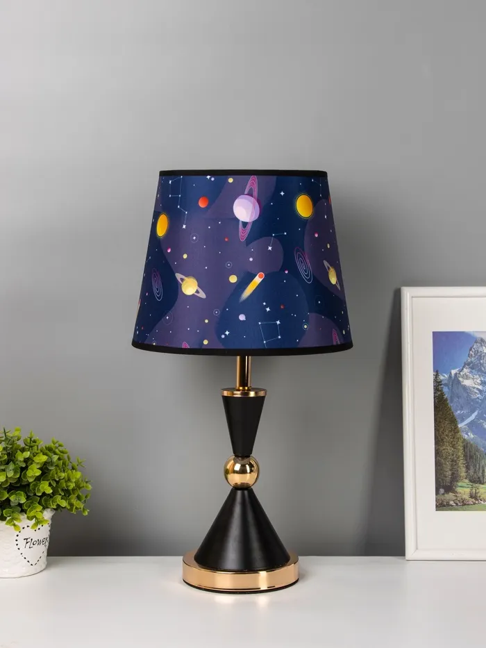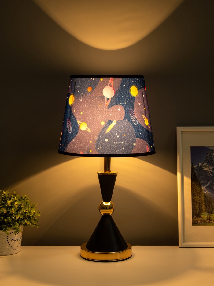- Приглушённое, тёплое свечение: Конусный картонный абажур в тёмных тонах и синем цвете мягко рассеивает свет по сторонам, формируя уютный световой ореол. Световой поток 230–360 лм подходит для вечернего чтения или фонового освещения.