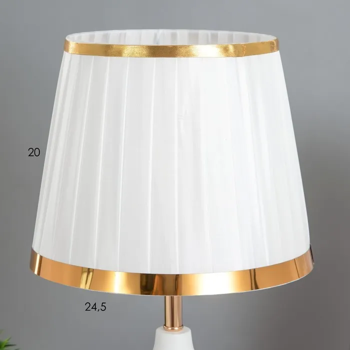 Эта элегантная настольная лампа в бело-золотом исполнении станет изысканным акцентом в вашем интерьере. С размерами 25х25х42 см, она идеально подходит для создания уютной атмосферы в любом помещении, будь то гостиная, спальня или кабинет.