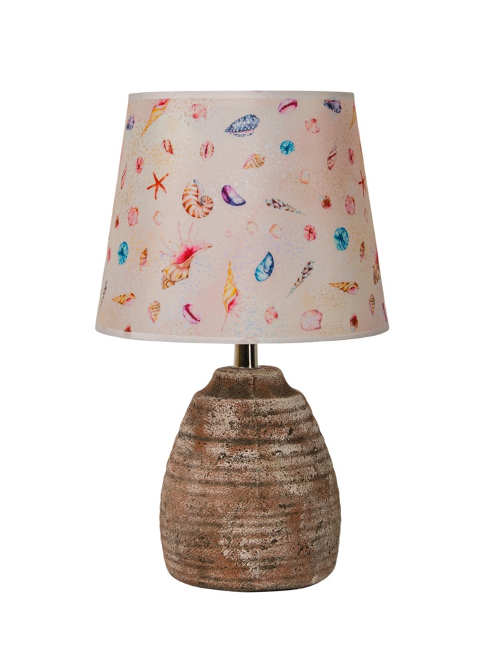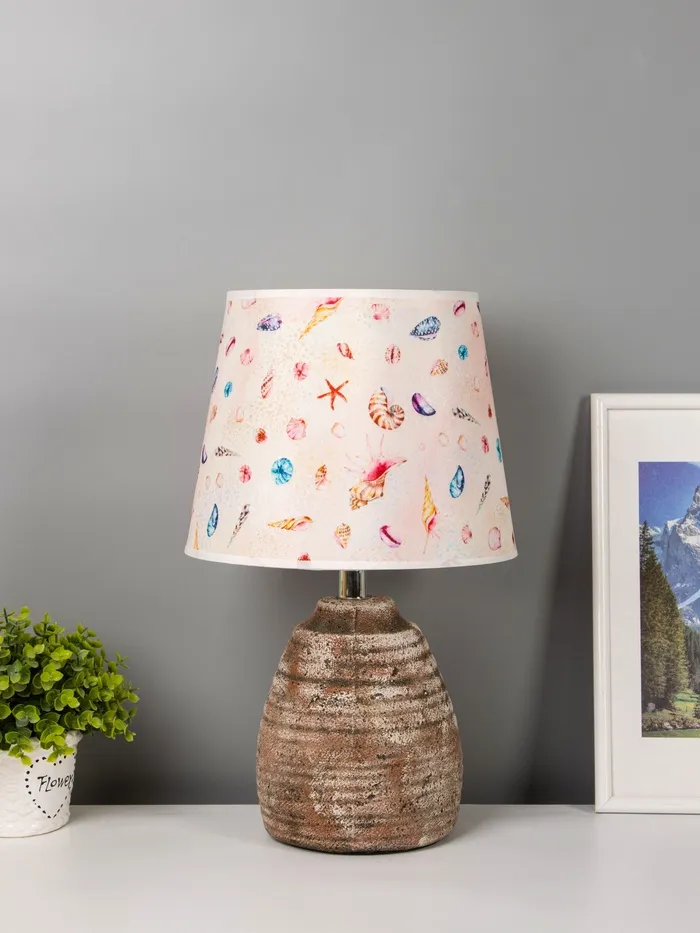 Особенности модели: Высота лампы составляет 40 см, а ширина абажура — 30 см. Керамическое основание обеспечивает устойчивость на любой поверхности. «Эстель» — это решение для тех, кто ценит в интерьере не только функциональность, но и художественную выразительность. Светильник подходит для гостиных, спален или творческих пространств.