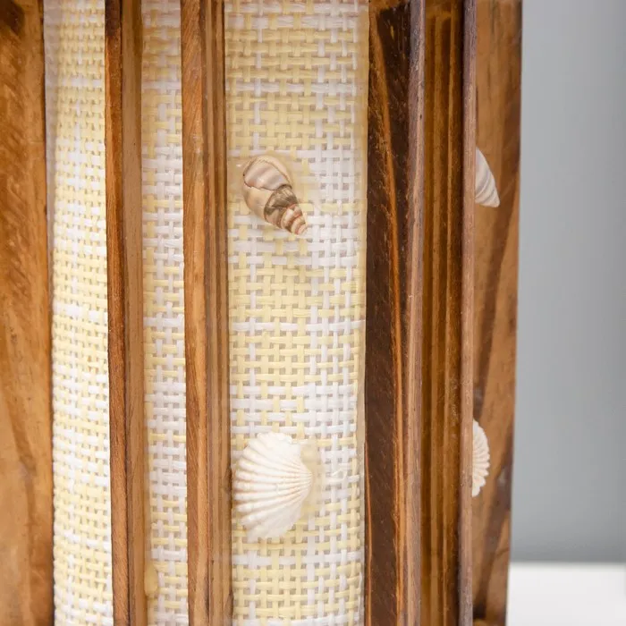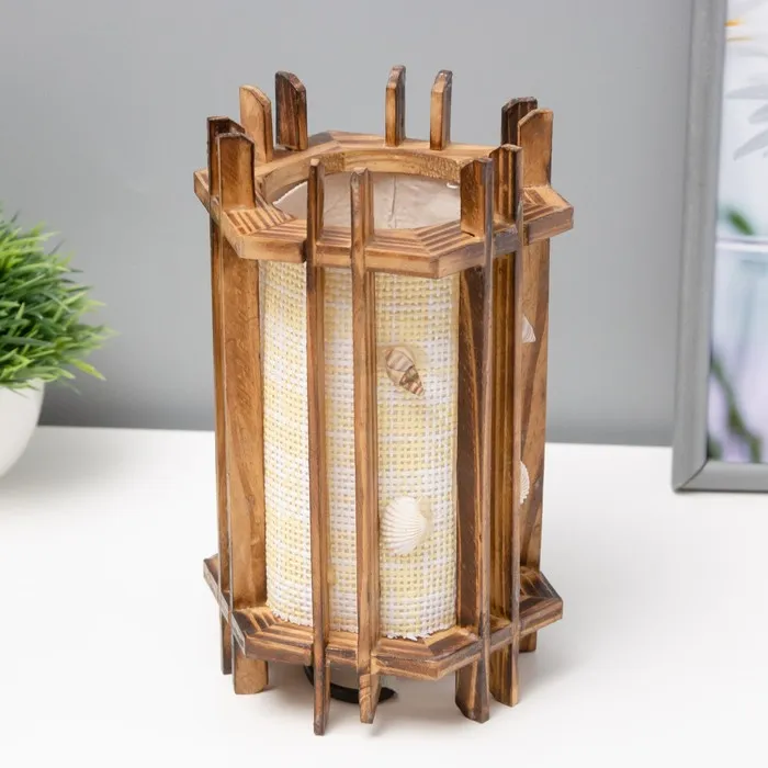- Коричневое деревянное основание придаёт лампе натуральный и тёплый вид.
