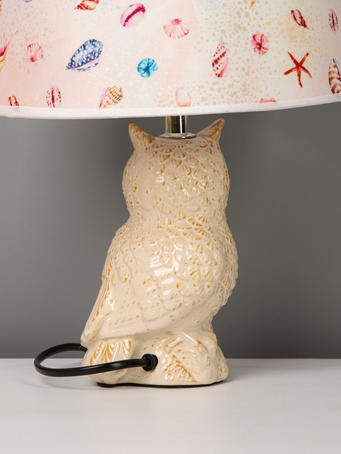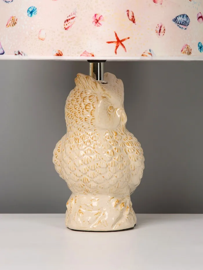 - Дизайн с характером: Форма лампы в виде совы придаёт ей выразительность и мягкую игривость. Бежевое керамическое основание с плавными линиями смотрится тепло и естественно, гармонируя с любыми текстурами – от дерева до льна.