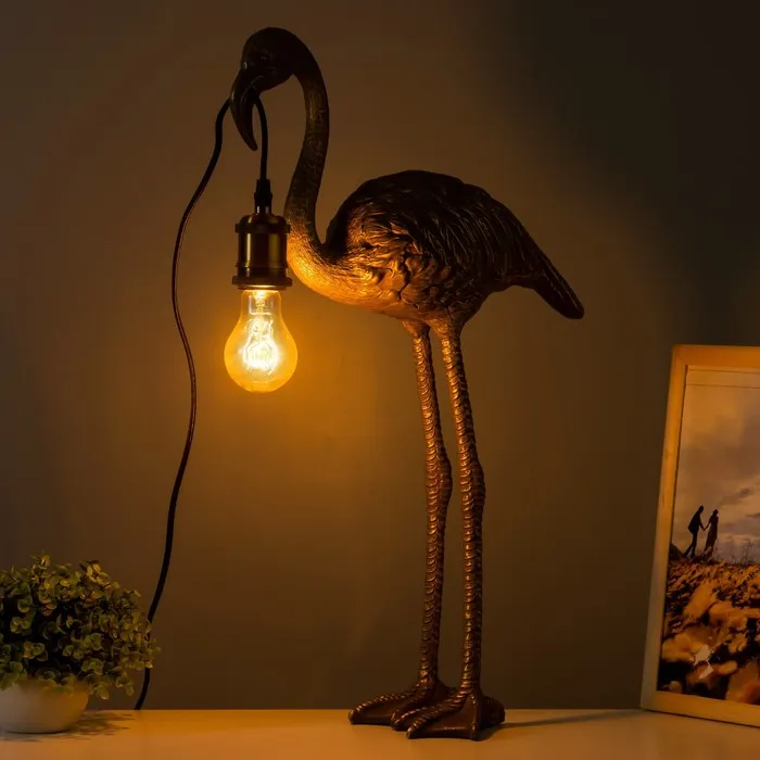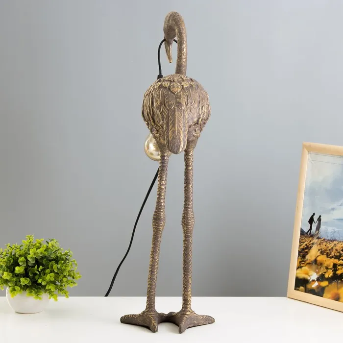 Эта настольная лампа в форме птицы станет ярким акцентом в вашем интерьере. С золотым основанием из полистоуна и размерами 41,5×41,5×66,5 см, она не только освещает пространство, но и привлекает внимание своим уникальным дизайном. Подходит для ламп накаливания мощностью до 40 Вт и использует цоколь E27.