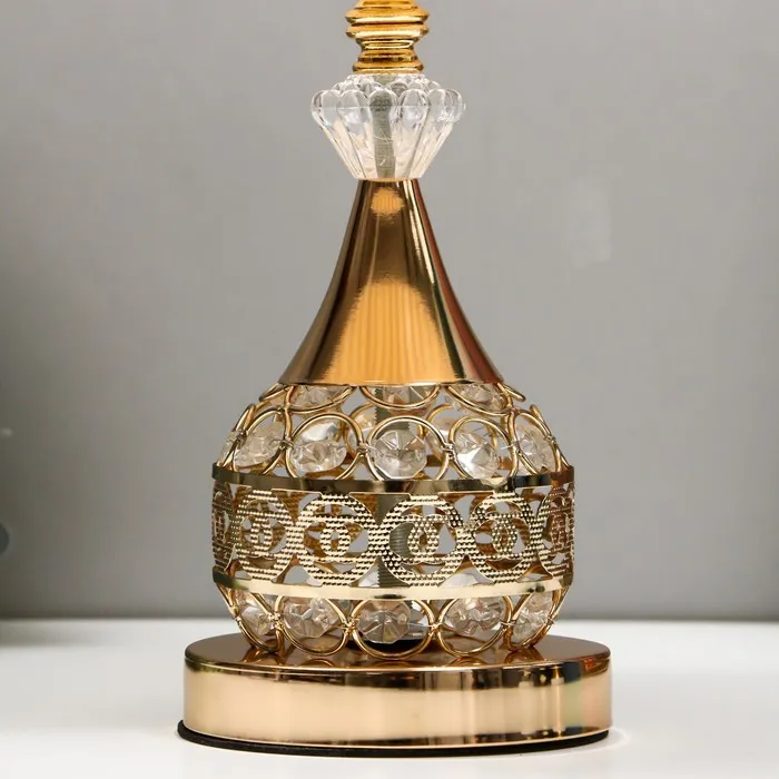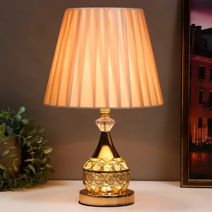 - Классический стиль: Золотое основание и светлый текстильный абажур создают элегантный вид, который легко вписывается в различные интерьеры.