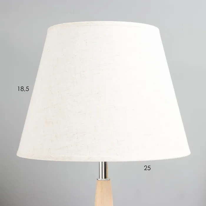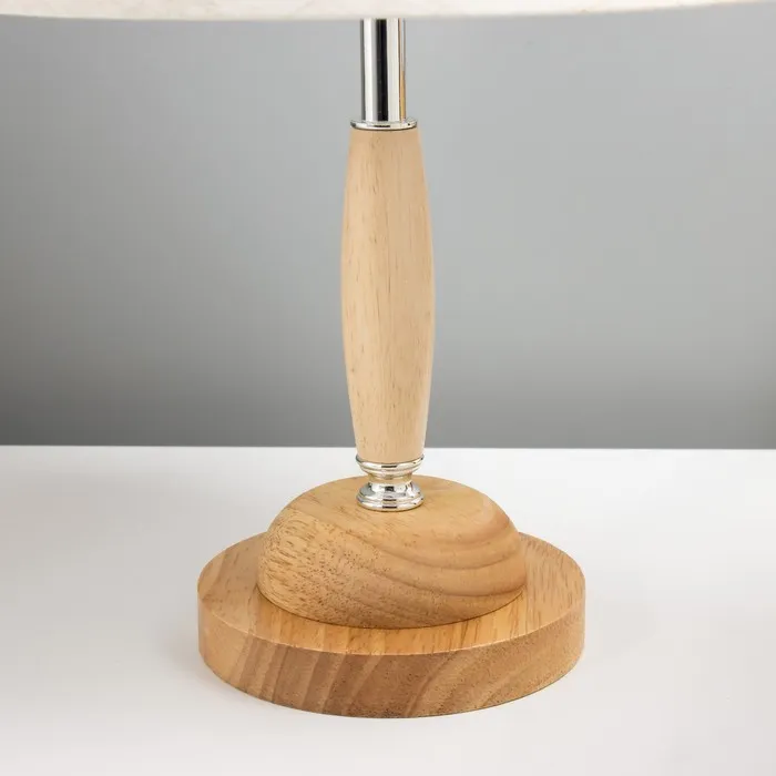 Эта стильная настольная лампа с деревянным основанием и текстильным абажуром станет идеальным дополнением вашего интерьера. С размерами 25х25х37,5 см и мощностью 40 Вт, она создает мягкое и уютное освещение, подходящее для чтения или отдыха. Конусный абажур в светлых тонах добавляет нотку элегантности и гармонии в любое пространство.