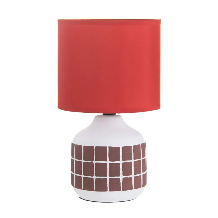Эта настольная лампа станет ярким акцентом в вашем интерьере, добавляя стиль и уют. Керамическое основание в белом и красном цветах гармонично сочетается с текстильным абажуром, создавая атмосферу тепла и комфорта.