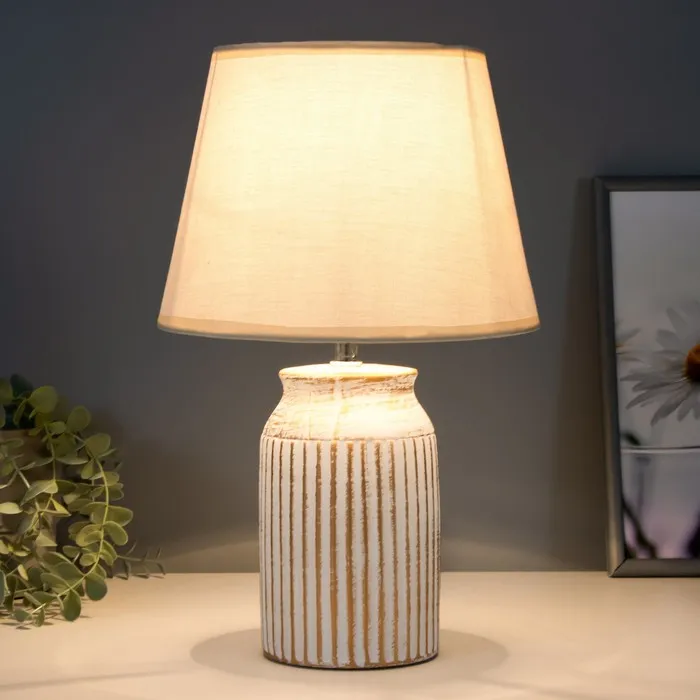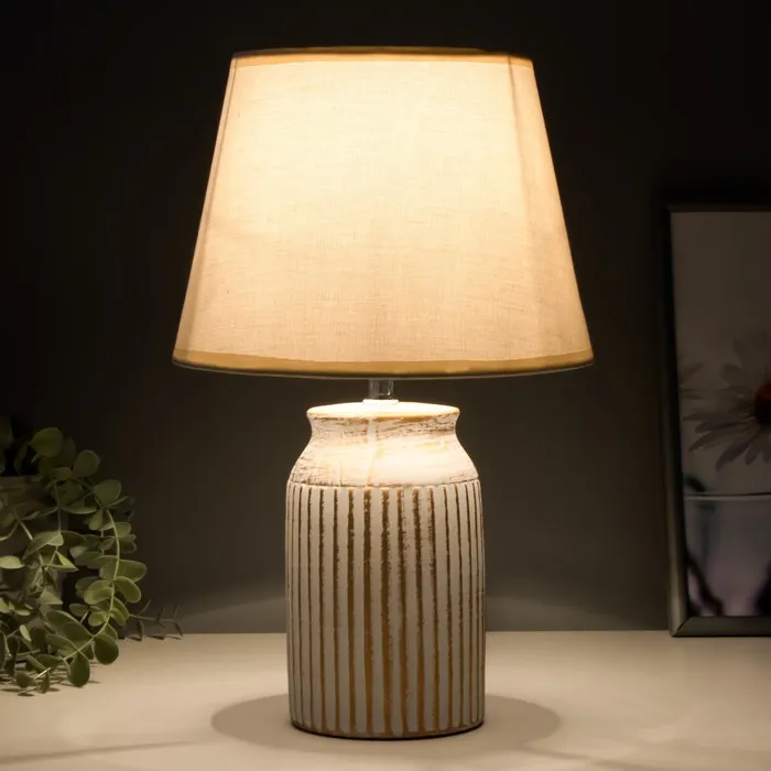 - Текстильный абажур мягко рассеивает свет, создавая комфортное освещение.