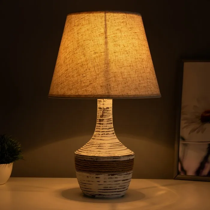 Эта стильная настольная лампа станет прекрасным дополнением вашего интерьера, создавая уютную атмосферу и обеспечивая комфортное освещение. Бежевое керамическое основание и текстильный абажур в светлых тонах делают её идеальной для чтения и работы.