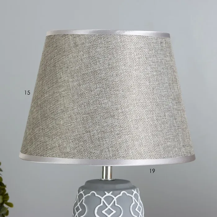 Эта настольная лампа станет идеальным акцентом для вашего интерьера, добавляя стиль и уют в любое пространство. Сочетание керамического основания в серо-белых тонах с конусным абажуром создает атмосферу комфорта и элегантности.