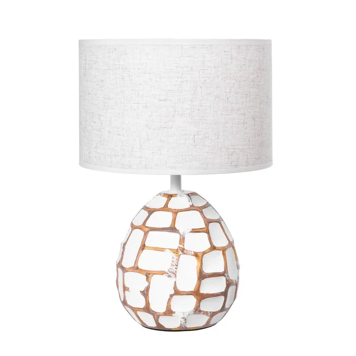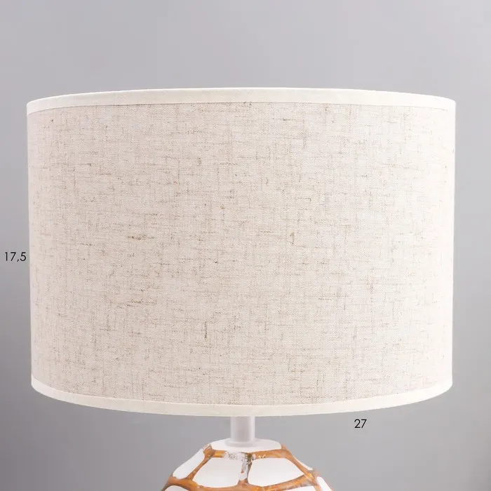 Эта настольная лампа станет изысканным дополнением вашего интерьера, придавая ему уют и стиль. Сочетание белого и коричневого керамического основания с бежевым текстильным абажуром создает мягкое и комфортное освещение, подходящее для любой комнаты.