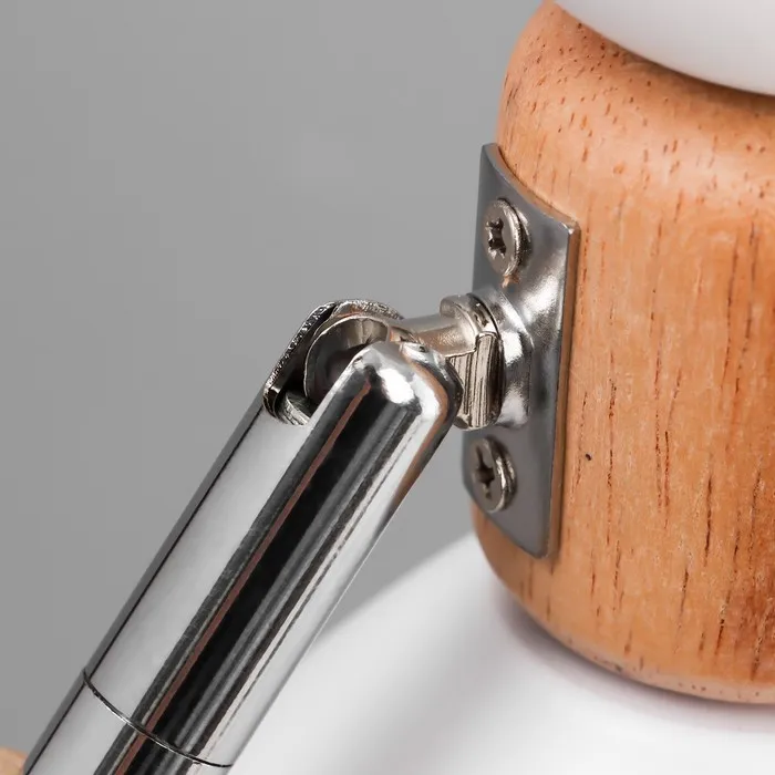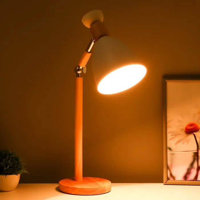 Эта настольная лампа станет отличным дополнением вашего интерьера, добавляя уют и стиль в любое пространство. Сочетание коричневого деревянного основания и белого металлического плафона создает гармоничное освещение, подходящее для чтения или просто для создания комфортной атмосферы.