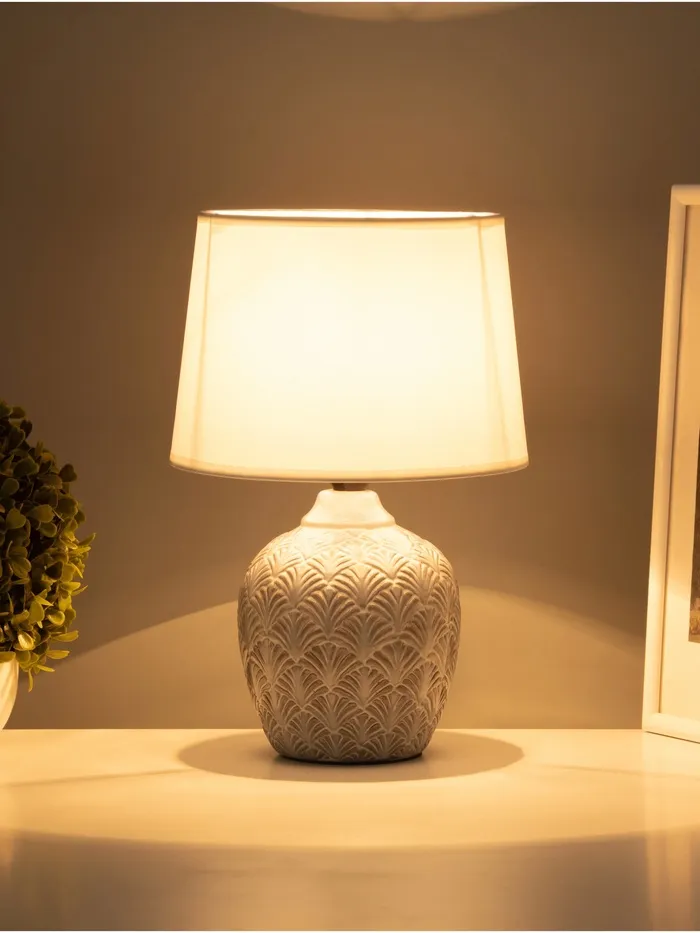 - Элегантный дизайн: Серое керамическое основание и светлый абажур гармонично сочетаются, добавляя нотки современности в ваш дом.