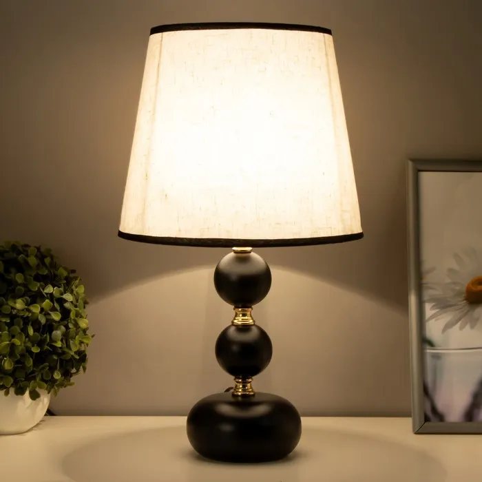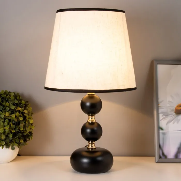 - Металлическое основание в черном и золотом цветах придает лампе элегантный вид, позволяя ей гармонично вписаться в классические и современные интерьеры.