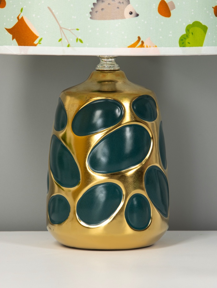- Керамика как признак веса: Основание выполнено из плотной керамики, сочетая глубокий зелёный и золотой. Это не просто опора — это деталь, которая придаёт лампе устойчивость и визуальную значимость. Такие лампы не покупают на один сезон — они остаются.