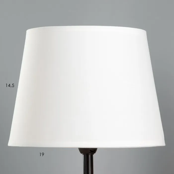 - Трапециевидный абажур из текстиля направляет свет вверх, создавая мягкое рассеянное освещение.