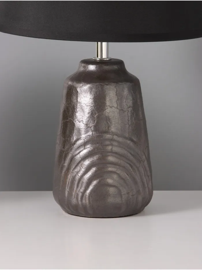 - Элегантный дизайн: Керамическое основание в черном цвете и трапециевидный абажур из текстиля и пластика создают современный и стильный образ, подходящий для различных стилей оформления.