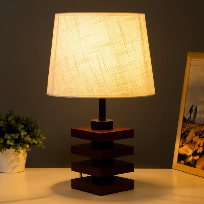 Эта настольная лампа станет стильным акцентом в вашем интерьере, добавляя уют и комфорт. С металлическим и деревянным основанием в коричневых и черных тонах, а также текстильным абажуром светлых оттенков, она прекрасно впишется в различные стили оформления.