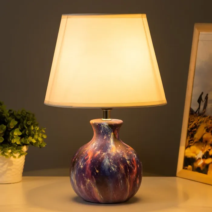 Настольная лампа с керамическим основанием в фиолетовых тонах станет изысканным элементом вашего интерьера. Она не только освещает пространство, но и создает уютную атмосферу, подходящую для чтения, работы или отдыха.