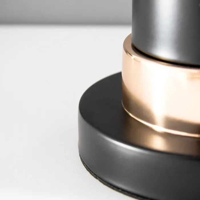 - Металлическое основание в чёрном и золотом цветах придаёт лампе современный и стильный вид.