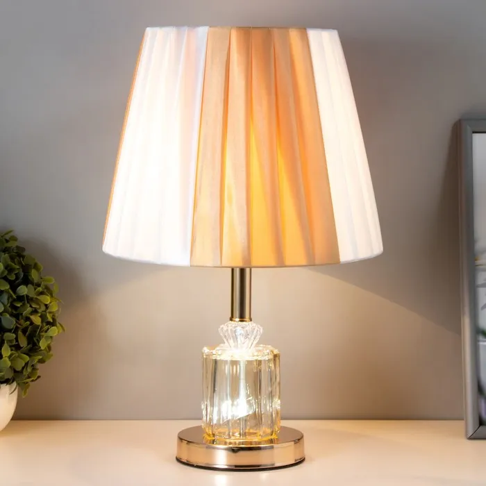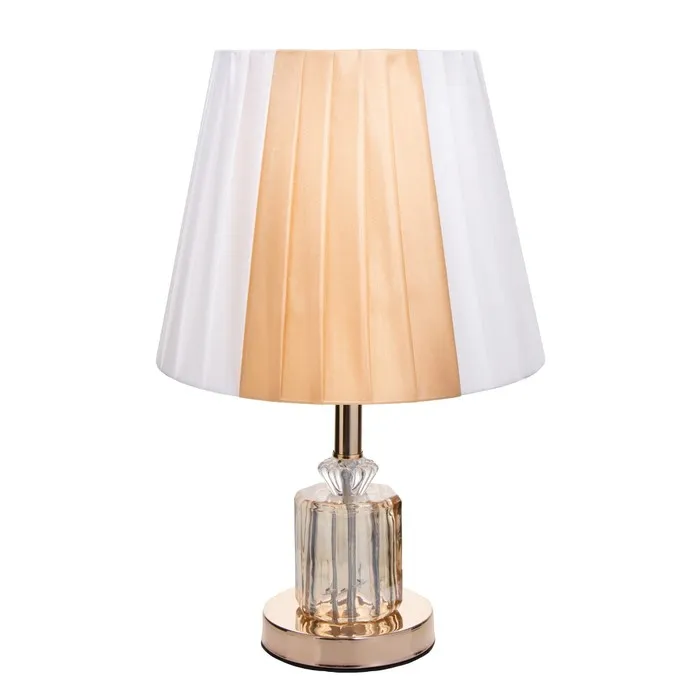 Эта элегантная настольная лампа в золотом цвете добавит роскоши вашему интерьеру. Классический дизайн с текстильным абажуром и металлическим основанием создает атмосферу уюта и стиля. Идеально подходит для освещения рабочего стола или прикроватной тумбочки.