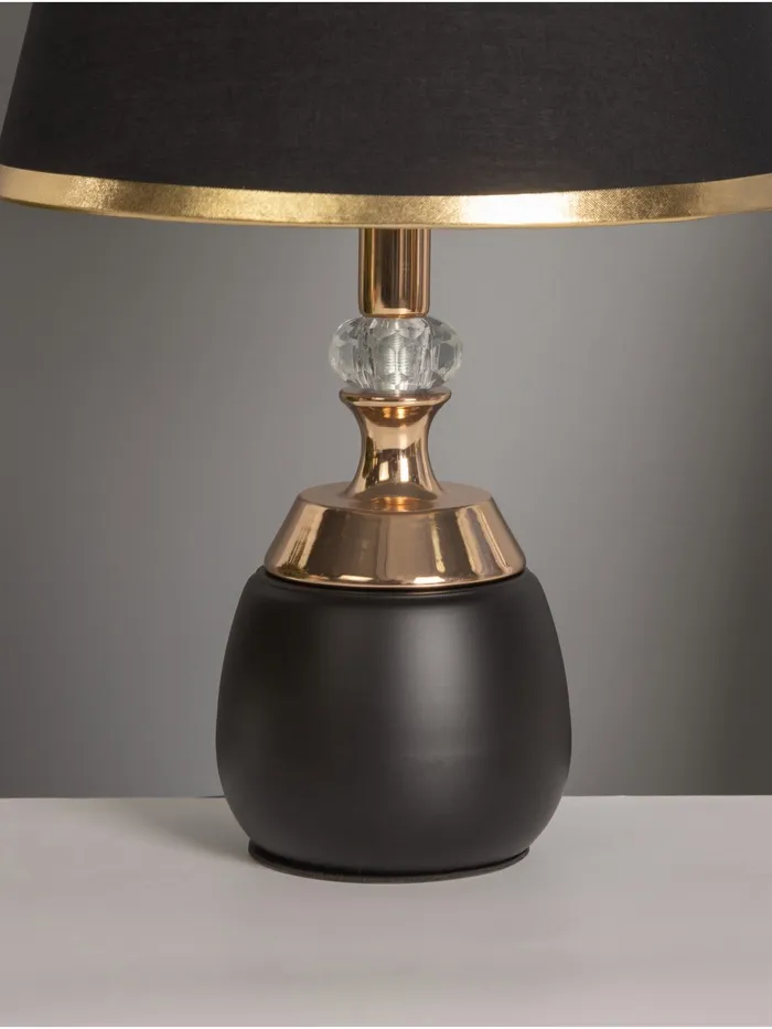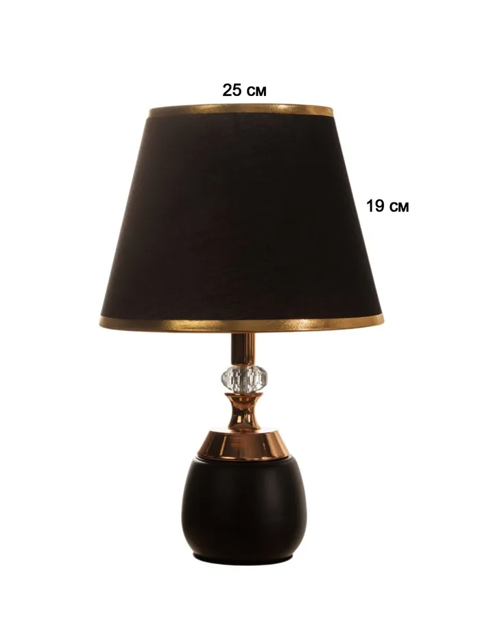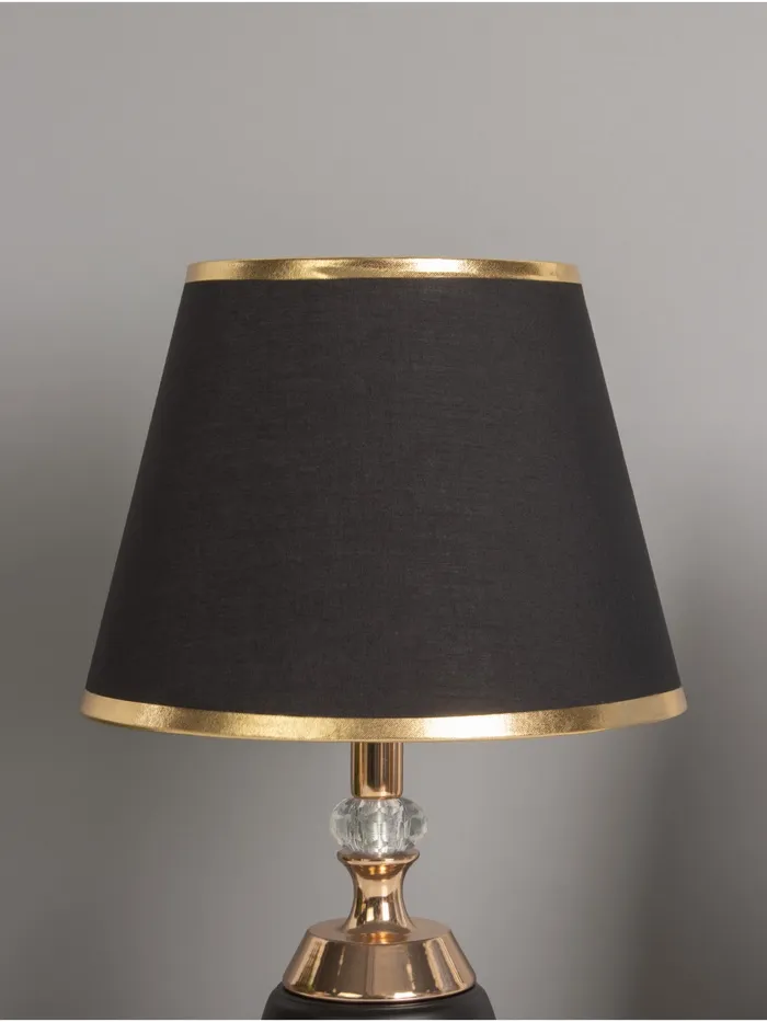 - Металлическое основание в золотом и черном цветах придаёт лампе элегантный вид и делает её подходящей для различных стилей интерьера.