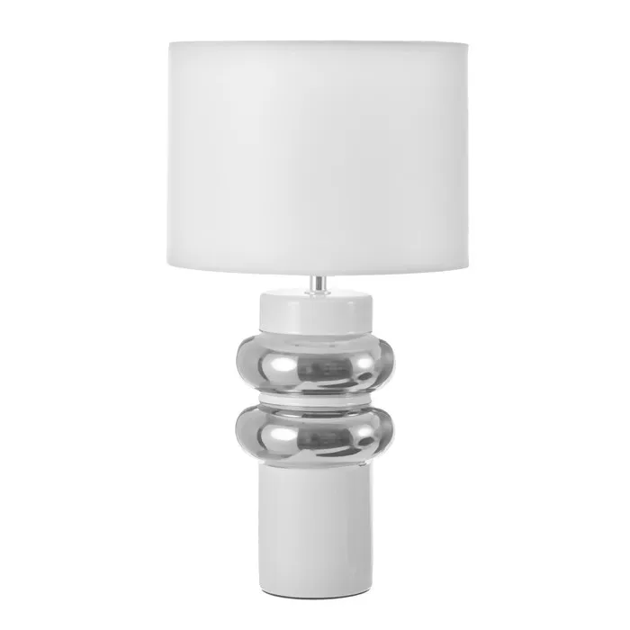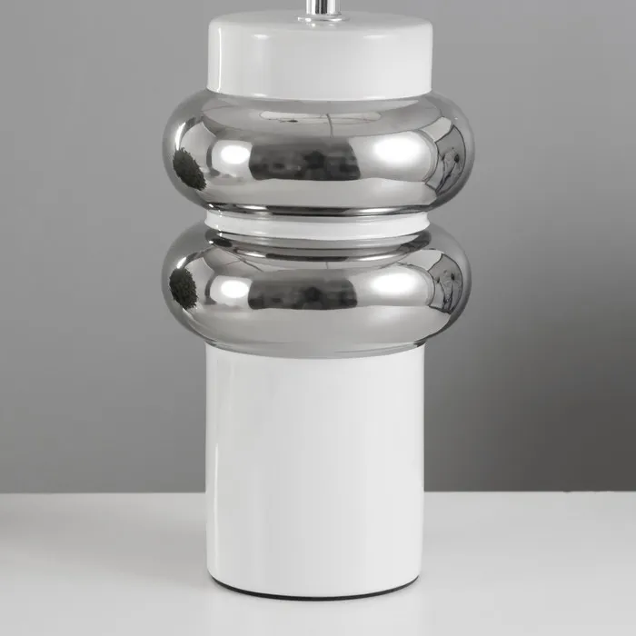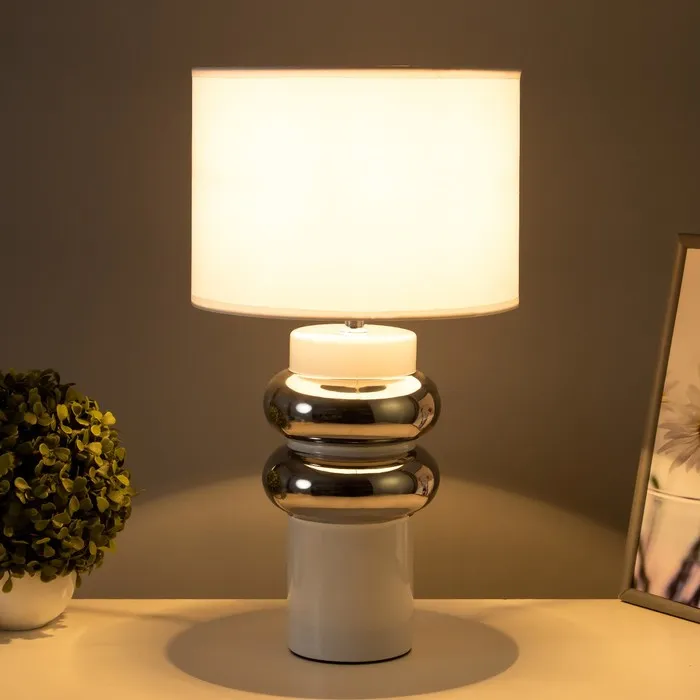 Эта настольная лампа в бело-хромовом дизайне станет стильным дополнением вашего интерьера. С её лаконичным силуэтом и цилиндрическим текстильным абажуром, она не только создаёт уютное освещение, но и добавляет элегантности в любое пространство. Идеально подходит для использования на столе, тумбочке или в уголке для чтения.