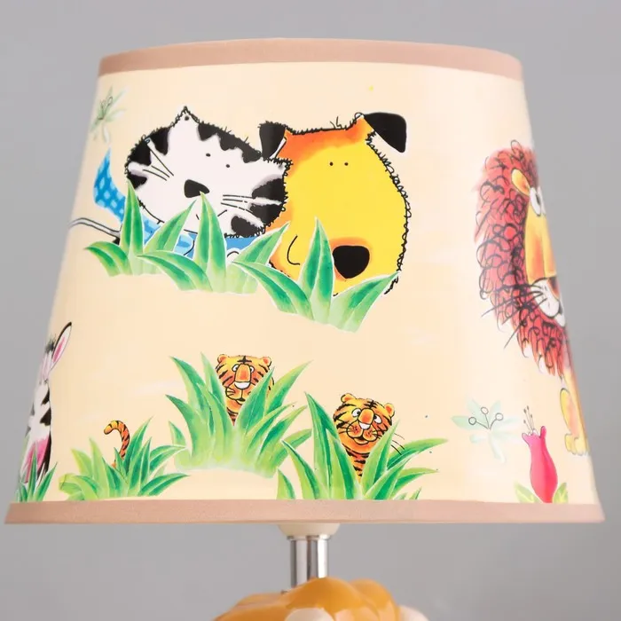 Эта настольная лампа в форме льва станет ярким акцентом в вашем интерьере. С белым и оранжевым керамическим основанием и разноцветным абажуром, она привнесет игривость и оригинальность в любое пространство. Идеально подходит для детской комнаты или для создания уникальной атмосферы в гостиной.