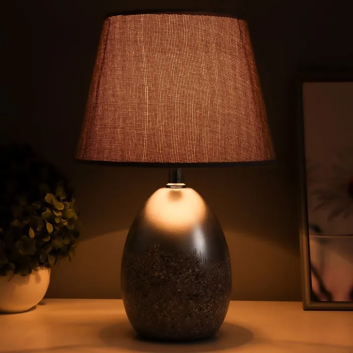 - Стильный дизайн с керамическим основанием и текстильным абажуром.